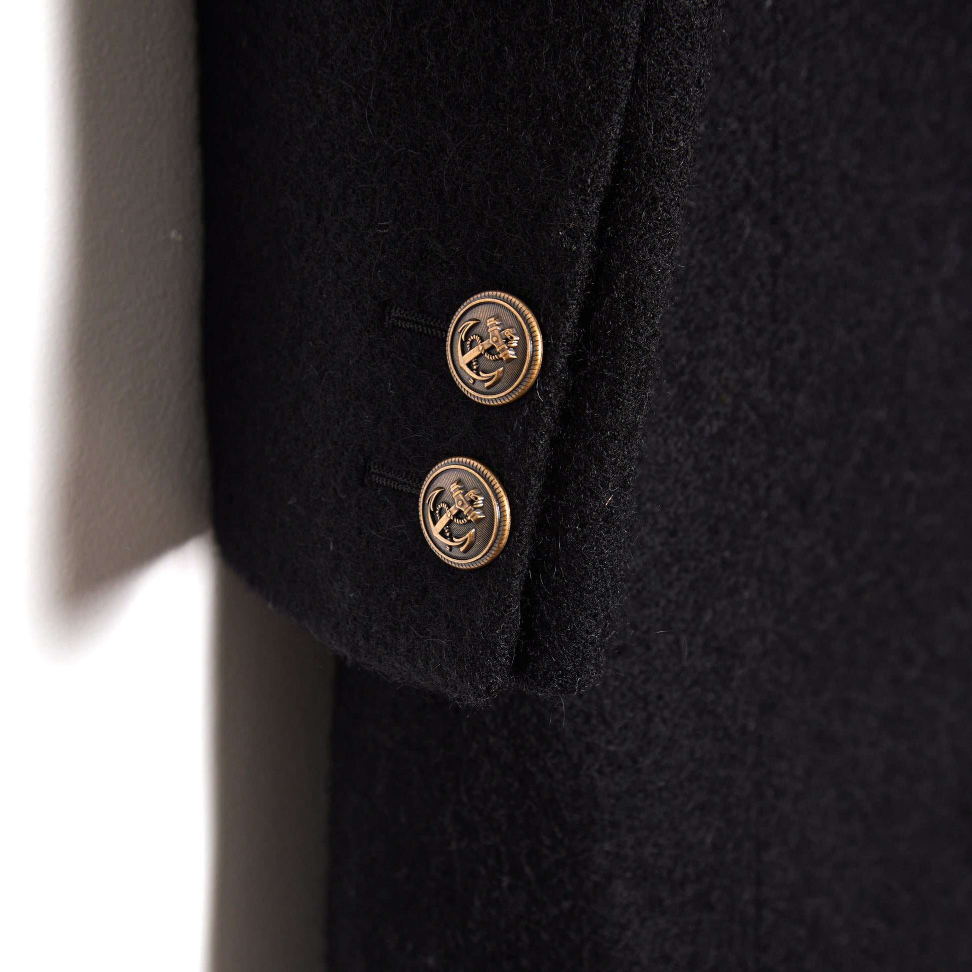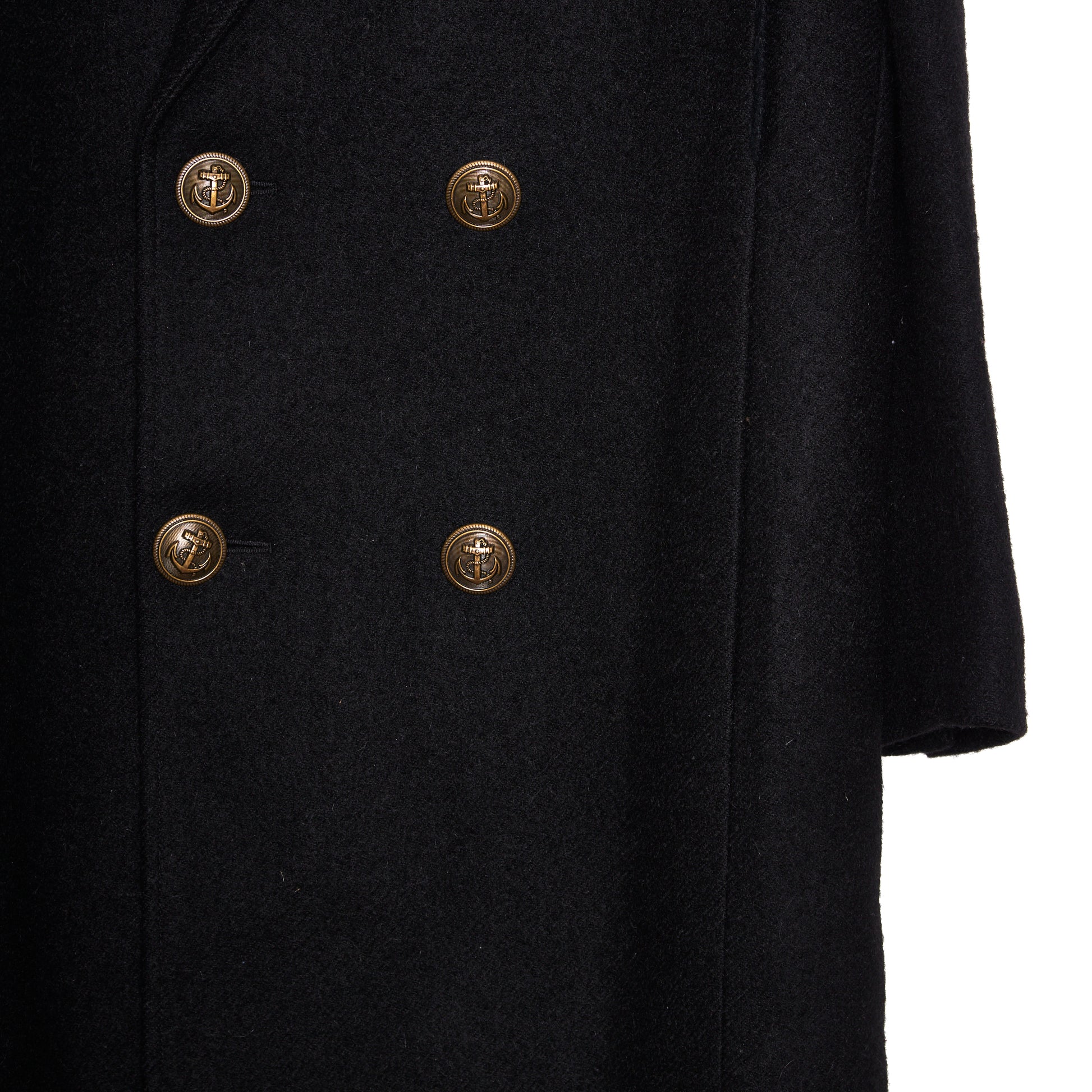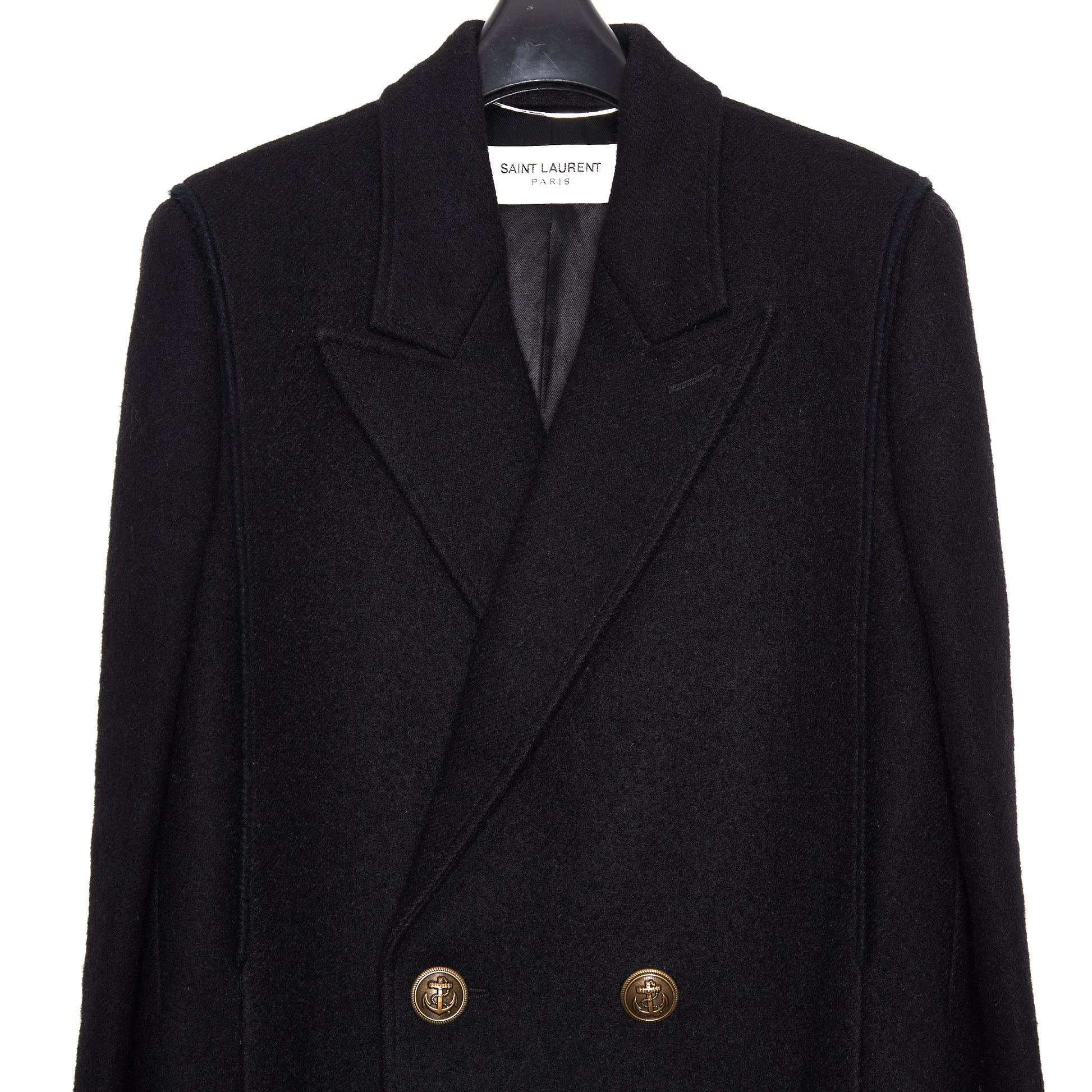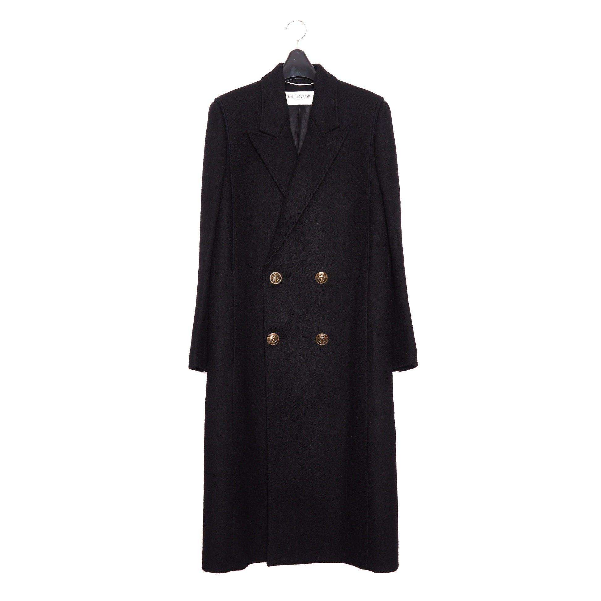 SAINT LAURENT Double-Breasted Long Wool Coat - Black 44